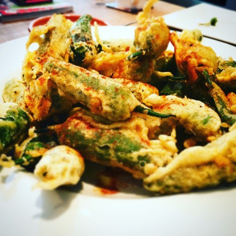 Padron peppers are usually fried in oil with salt and they taste amazing. This is a sort of tempura treatment of them so you get the additional bonus of a nice crunch at the same time as having that wonderful Padron taste inside.