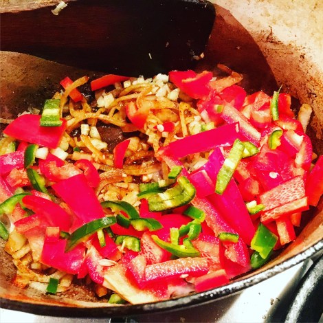3. Soften the onions with some paprika, salt, pepper and the sugar.