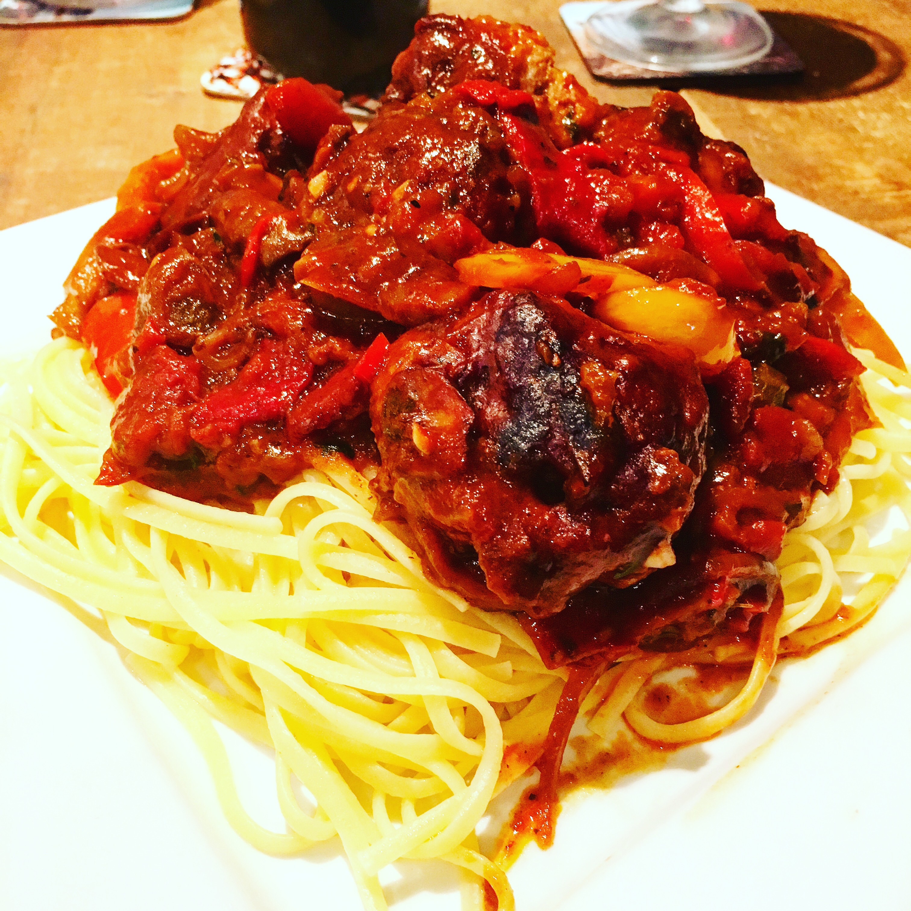 15. Boil spaghetti. (If using fresh spaghetti boil it once the meatballs are done).